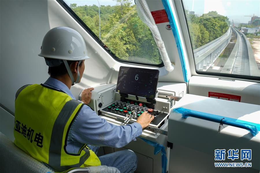 6月3日,工程技術(shù)人員在“云巴”車(chē)廂內(nèi)對(duì)自動(dòng)駕駛系統(tǒng)進(jìn)行調(diào)試。近日,重慶市首條“云巴”示范線項(xiàng)目在重慶璧山區(qū)正式亮相。此次發(fā)布的“云巴”采用電能驅(qū)動(dòng),具有轉(zhuǎn)彎半徑小、爬坡能力強(qiáng)、噪音低、安全性高、建設(shè)成本低、建造周期短等優(yōu)勢(shì),能為乘客提供更智能、舒適、便捷的出行體驗(yàn)。據(jù)介紹,璧山區(qū)“云巴”示范線項(xiàng)目自2019年8月開(kāi)建,線路正線全長(zhǎng)15.4km,共設(shè)車(chē)站15座,預(yù)計(jì)2020年9月全線通車(chē)。新華社記者劉潺攝。