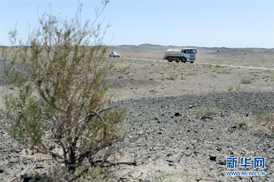 在新疆卡拉麥里山有蹄類野生動物自然保護(hù)區(qū),管護(hù)員為野生動物拉運(yùn)飲水(6月3日攝)。新華社記者丁磊攝。