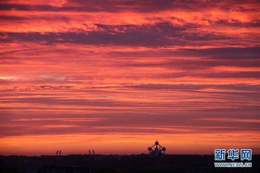 2020年5月22日黃昏時(shí)分,比利時(shí)首都布魯塞爾漫天的火燒云映襯著原子球塔。6月5日是第47個(gè)聯(lián)合國世界環(huán)境日,今年的主題為“關(guān)愛自然刻不容緩”。新華社記者鄭煥松攝。