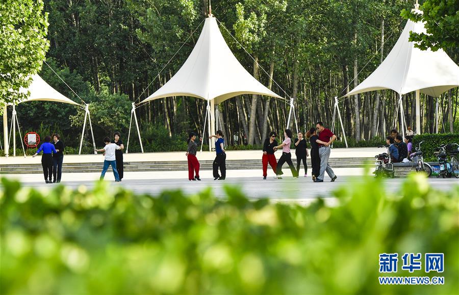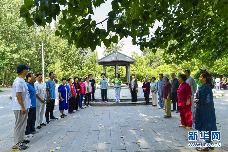 6月5日,市民在文安縣水景公園內(nèi)練習合唱。近年來,河北省文安縣將植樹造林與城市建設(shè)有機融合,探索“政府引導(dǎo)、企業(yè)運作、多方共贏”的市場化植樹造林新模式,大規(guī)模推進國土綠化,打造人與自然和諧共生的優(yōu)美生態(tài)環(huán)境,構(gòu)筑京津雄綠色屏障。截至目前,該縣森林覆蓋率已經(jīng)達到33%,城區(qū)綠地面積達到36.48%。新華社記者李曉果攝。