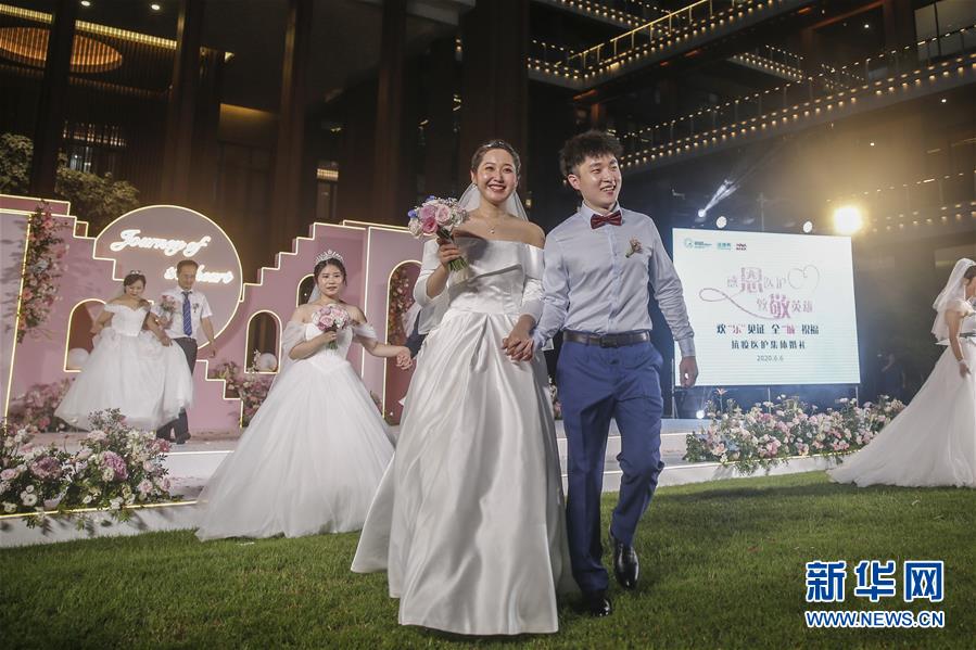 6月6日,新人在海南博鰲樂城國際醫(yī)療旅游先行區(qū)參加集體婚禮。 新華社記者 張玉薇 攝
