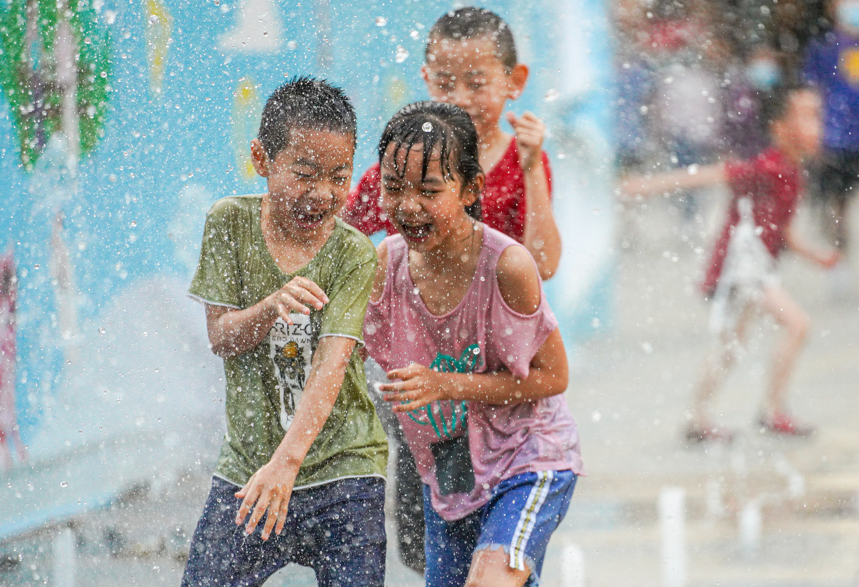 2020年6月9日報道,近期,今年以來最大范圍高溫天氣“炙烤”北方,多地高溫屢創(chuàng)紀(jì)錄,中央氣象臺已連續(xù)3天發(fā)布高溫預(yù)警,同時,高溫少雨也導(dǎo)致一些地區(qū)出現(xiàn)嚴(yán)重旱情。圖為2020年6月4日,北京三里屯噴泉廣場,很多孩子聚集在此,水中玩耍異?;鸨?/p>