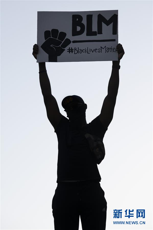 6月8日,一名男子在美國華盛頓白宮附近手舉“黑人的命也是命”的抗議標語。新華社記者劉杰攝