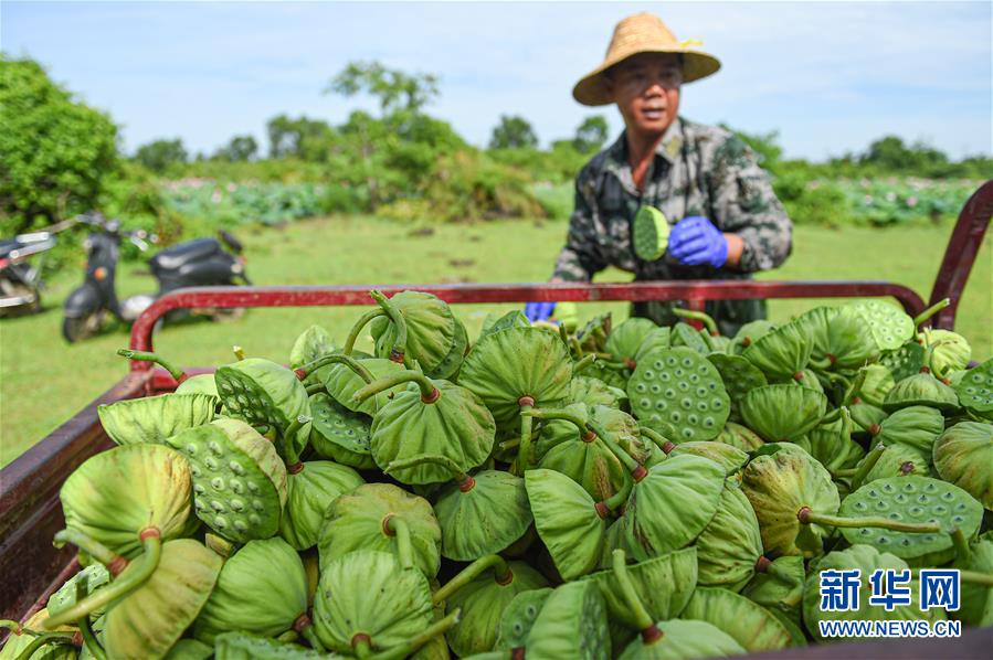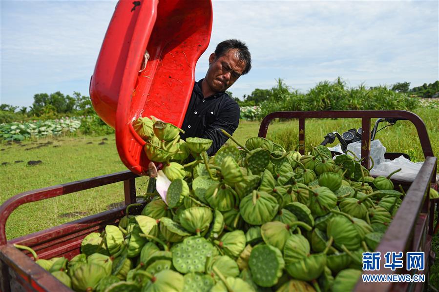 6月9日,村民在??邶埲A區(qū)龍泉鎮(zhèn)椰子頭村裝運(yùn)采摘的蓮蓬。初夏時(shí)節(jié),位于海南??邶埲A區(qū)龍泉鎮(zhèn)的蓮蓬逐漸成熟,當(dāng)?shù)卮迕窦泳o采摘,一派繁忙景象。新華社記者蒲曉旭攝