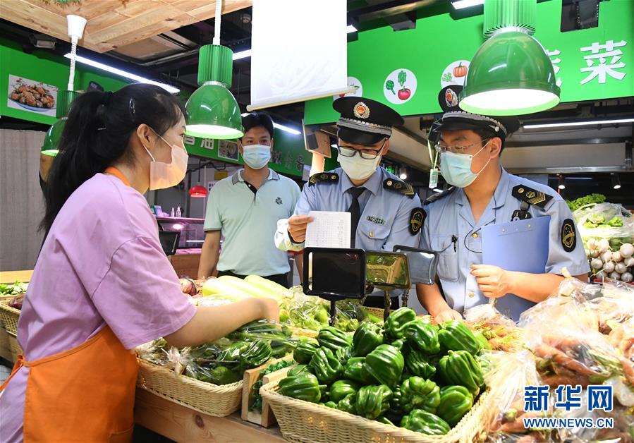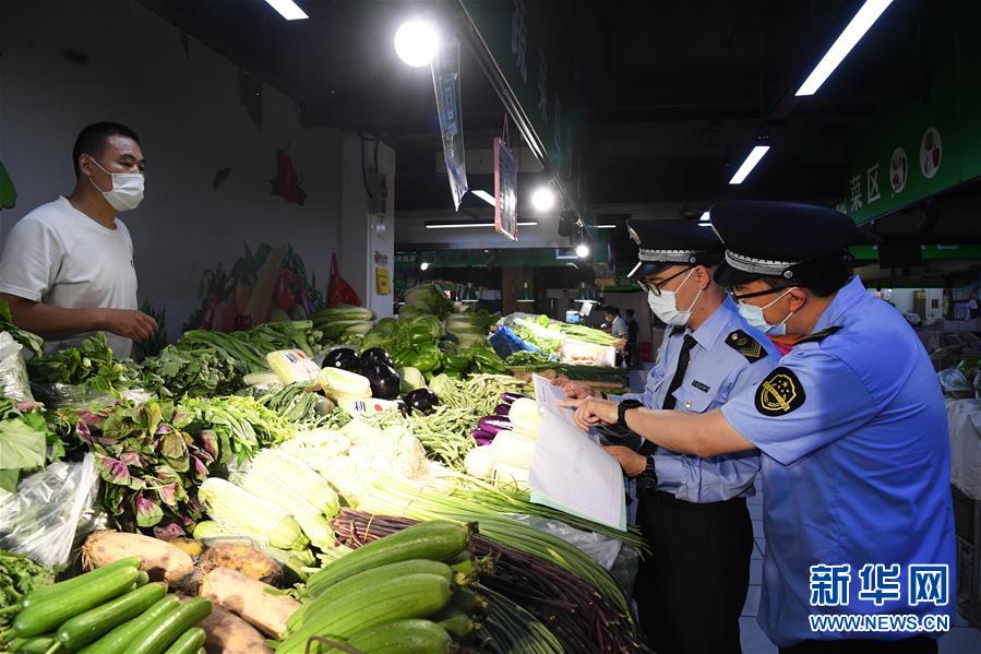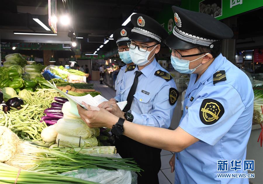 當日,北京市市場監(jiān)督管理局和海淀區(qū)市場監(jiān)督管理局的執(zhí)法人員來到位于海淀區(qū)的增光鴻運市場和海碗居增光路店,對市場內蔬菜鮮肉等農(nóng)產(chǎn)品的進貨渠道、餐飲店的消毒情況進行檢查,保障市民生活安全。