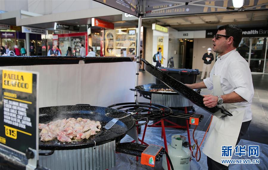 6月19日,一名美食攤主在澳大利亞悉尼查茨伍德鎮(zhèn)忙碌。華社記者白雪飛攝