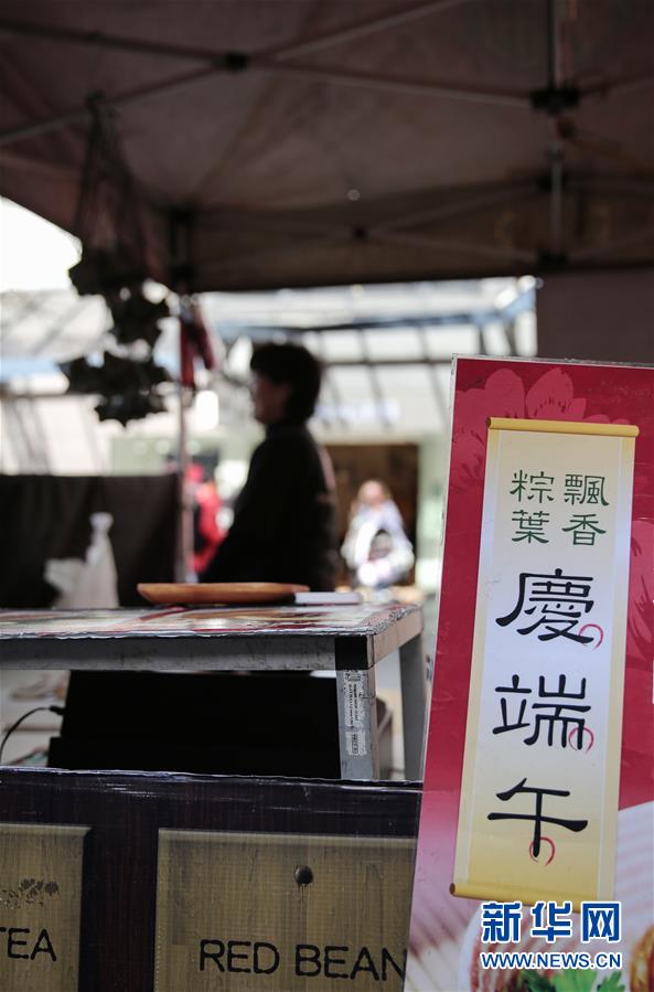 6月19日,華人攤主江阿姨在澳大利亞悉尼查茨伍德鎮(zhèn)準備銷售粽子。新華社記者白雪飛攝