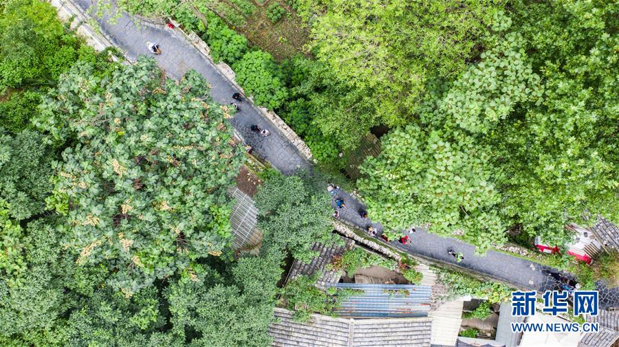 貴陽(yáng)市青巖古鎮(zhèn)景區(qū)風(fēng)光(無(wú)人機(jī)照片)。仲夏時(shí)節(jié),貴州省貴陽(yáng)市花溪區(qū)青巖古鎮(zhèn)景區(qū)綠意盎然,優(yōu)美的風(fēng)景吸引眾多游客前來(lái)觀光游玩。新華社記者陶亮攝
