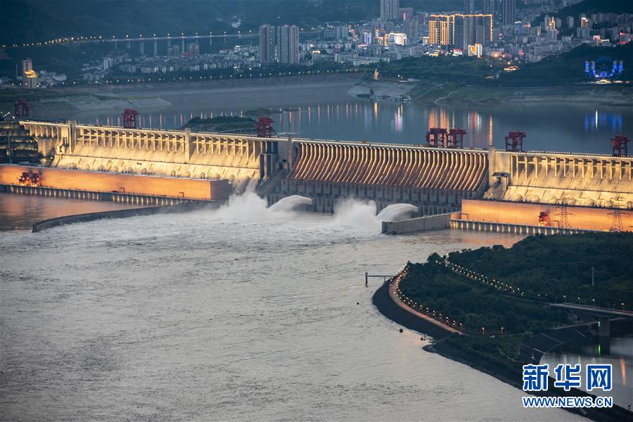 6月29日,三峽樞紐開啟泄洪孔泄洪。受長(zhǎng)江中上游強(qiáng)降雨影響,進(jìn)入三峽水庫(kù)的水量持續(xù)增多。為騰出一定庫(kù)容迎接近期可能到來的洪水,三峽樞紐于6月29日上午開啟兩個(gè)泄洪孔,加大下泄流量。這是三峽樞紐今年首次泄洪。28日14時(shí),三峽水庫(kù)入庫(kù)流量達(dá)4萬立方米/秒,是27日14時(shí)的兩倍。為應(yīng)對(duì)此輪來水,長(zhǎng)江防總要求將三峽水庫(kù)下泄流量上調(diào)至日均3.5萬立方米/秒。新華社發(fā)(鄭家裕攝)