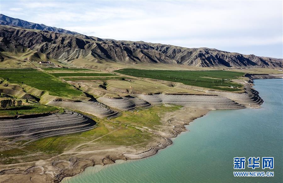 這是6月29日無人機拍攝的位于新疆特克斯縣境內(nèi)的喀拉托海湖風光(無人機照片)。時值夏日,位于天山腳下的新疆特克斯縣境內(nèi)的喀拉托海湖風光宜人,景色優(yōu)美。新華社記者王菲攝