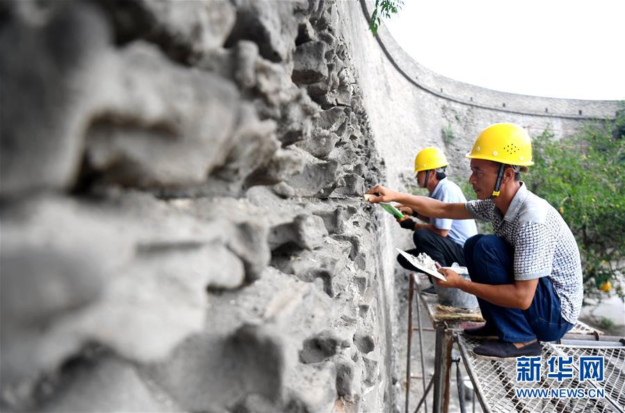 7月2日,工作人員在永年廣府古城修繕城墻。經(jīng)國家文物局和河北省文物局批準(zhǔn),河北永年廣府古城修繕工程已全面啟動。在文物專家全程參與下,按照“不改變文物原狀”原則進(jìn)行修繕,預(yù)計2021年4月底完工。永年廣府古城擁有華北地區(qū)保存最完整的古城墻,現(xiàn)為全國重點文物保護(hù)單位。新華社記者王曉攝