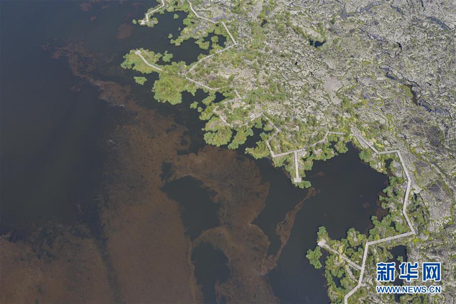 這是7月3日拍攝的五大連池風(fēng)景區(qū)(無人機(jī)照片)。 時下,五大連池風(fēng)景區(qū)內(nèi)植被蔥蘢,在火山、熔巖臺地、火山堰塞湖的映襯下,景色壯美。 五大連池風(fēng)景區(qū)位于黑龍江省黑河市,是較為典型和完整的近代火山噴發(fā)遺跡,被喻為“天然的火山博物館”。 新華社記者 謝劍飛 攝