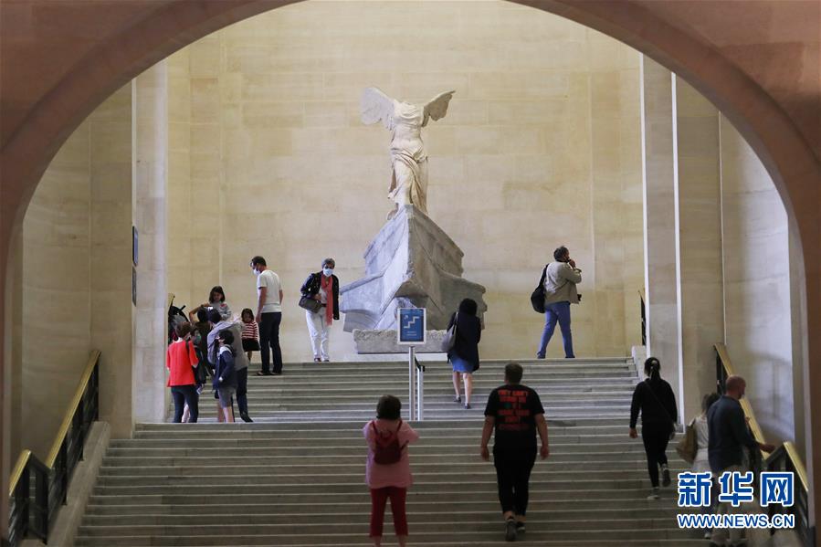 7月6日,在法國巴黎盧浮宮博物館,人們參觀雕塑《薩莫色雷斯勝利女神》。因新冠病毒疫情關(guān)閉3個多月后,法國盧浮宮博物館于6日重新開放。新華社記者高靜攝