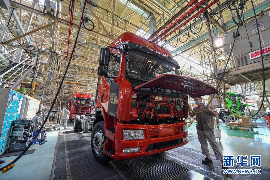 在位于長(zhǎng)春市的一汽解放總裝車間,工人在裝配車輛(6月19日攝)。中國(guó)第一汽車集團(tuán)披露,截至6月30日,集團(tuán)上半年共計(jì)生產(chǎn)整車162.23萬輛,同比增長(zhǎng)1.5%;銷售整車163.09萬輛,同比增長(zhǎng)2.3%。新華社記者張楠攝