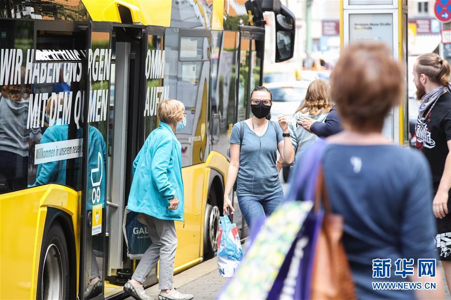 7月7日,在德國(guó)首都柏林,佩戴口罩的乘客離開(kāi)一輛公交車。針對(duì)有地方官員呼吁取消民眾乘坐公交車和在商場(chǎng)購(gòu)物時(shí)須戴口罩的規(guī)定,德國(guó)聯(lián)邦政府6日表示,支持延續(xù)“口罩強(qiáng)制令”。4月底,德國(guó)全部16個(gè)聯(lián)邦州陸續(xù)出臺(tái)“口罩強(qiáng)制令”,即居民在乘坐公交車和購(gòu)物時(shí)須佩戴口罩。新華社記者單宇琦攝
