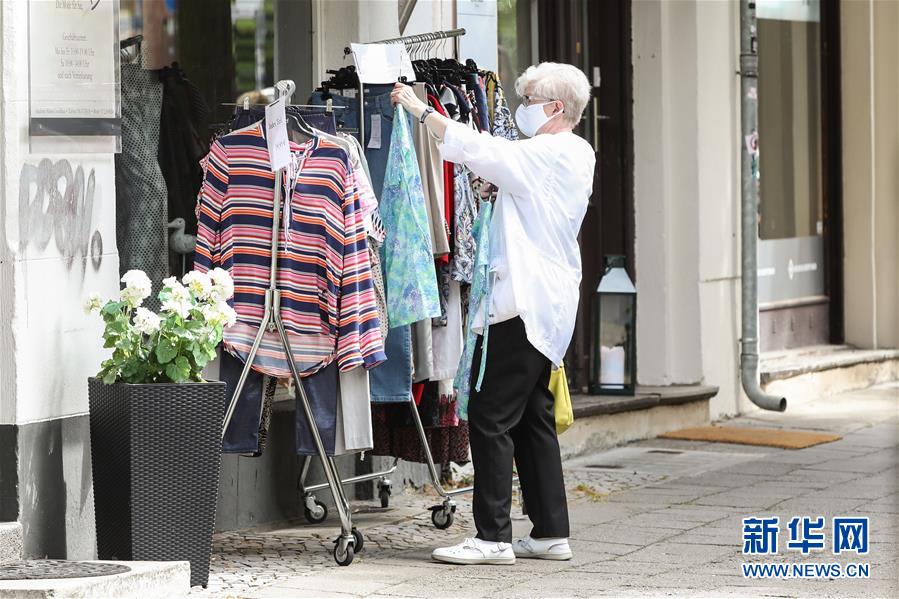 7月7日,一名佩戴口罩的女子在德國(guó)首都柏林的一家商店外挑選衣服。針對(duì)有地方官員呼吁取消民眾乘坐公交車和在商場(chǎng)購(gòu)物時(shí)須戴口罩的規(guī)定,德國(guó)聯(lián)邦政府6日表示,支持延續(xù)“口罩強(qiáng)制令”。4月底,德國(guó)全部16個(gè)聯(lián)邦州陸續(xù)出臺(tái)“口罩強(qiáng)制令”,即居民在乘坐公交車和購(gòu)物時(shí)須佩戴口罩。新華社記者單宇琦攝