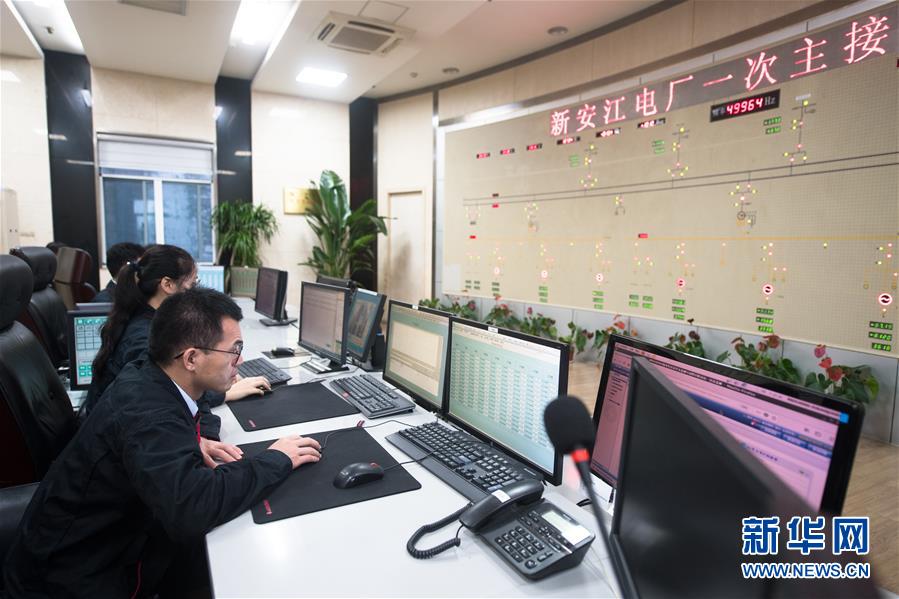 7月7日,新安江電廠工作人員在壩體內(nèi)部中央控制室工作。受持續(xù)降水影響,浙江新安江水庫(kù)水位持續(xù)快速上升。繼當(dāng)日10時(shí)開啟3孔、12時(shí)開啟5孔泄洪后,新安江水庫(kù)于16時(shí)增加到7孔泄洪。新安江水庫(kù)是華東地區(qū)最大的水庫(kù),在錢塘江流域的防洪度汛中起到關(guān)鍵作用。新華社記者翁忻旸攝