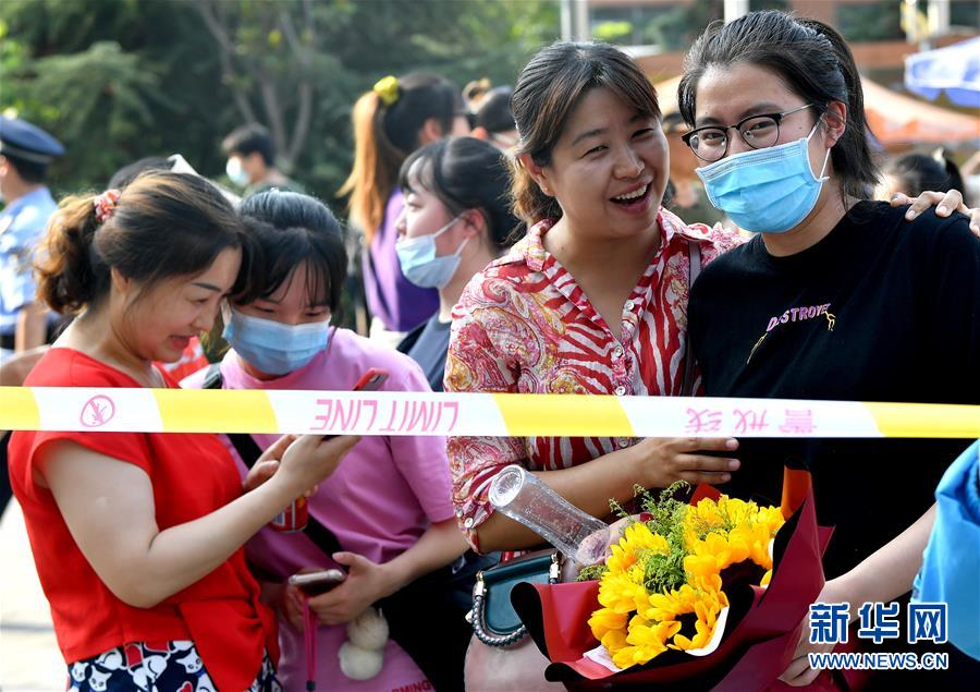 7月8日,吉林省長春希望高中考點的考生接過家長手中的花束。當日,全國部分地區(qū)2020年高考結(jié)束。新華社記者張楠攝