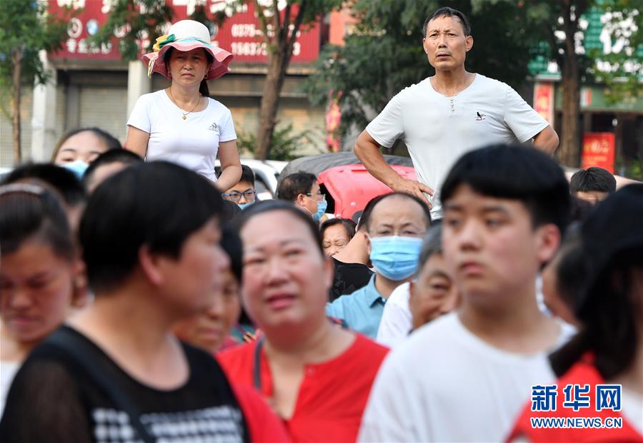 7月8日,在河南省寶豐縣第一高級中學(xué)考點,家長在考場外等候考生。當(dāng)日,全國部分地區(qū)2020年高考結(jié)束。新華社記者李嘉南攝