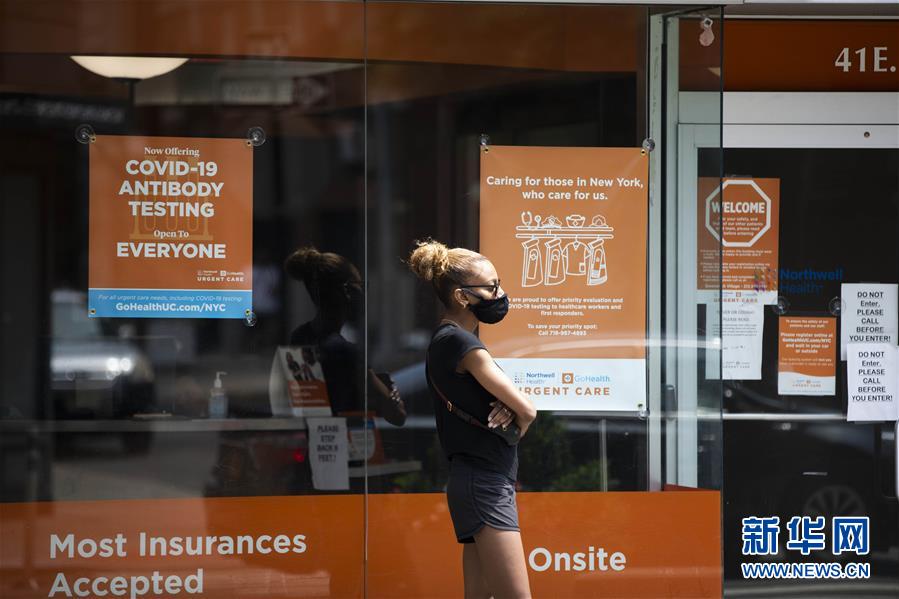 7月8日,一名女子在美國紐約一家診所外等候進(jìn)行新冠病毒檢測。美國約翰斯·霍普金斯大學(xué)8日發(fā)布的新冠疫情最新統(tǒng)計數(shù)據(jù)顯示,美國累計確診病例超過300萬例。數(shù)據(jù)顯示,截至美國東部時間8日11時34分(北京時間23時34分),美國累計確診病例3016515例,累計死亡病例131594例。新華社記者王迎攝