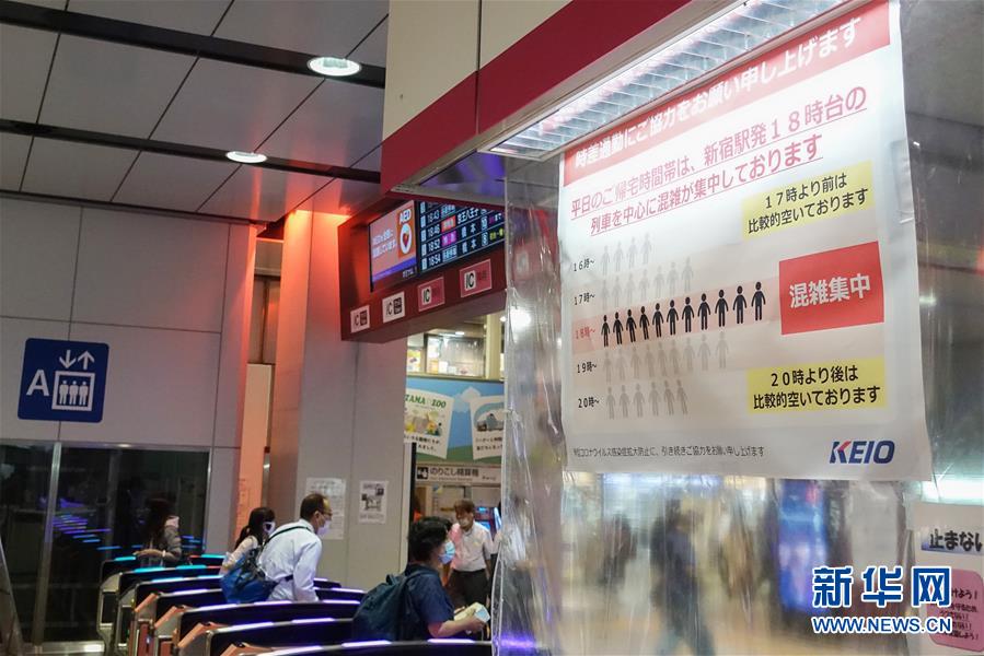 7月9日,日本東京新宿車站的一處入口上貼出告示,顯示該線路的人流量統(tǒng)計,建議乘客錯峰出行。據(jù)日本廣播協(xié)會電視臺9日統(tǒng)計,截至當(dāng)?shù)貢r間9日20時40分,日本當(dāng)日新增新冠確診病例354例,是5月2日以來該國單日新增確診首次超過300例,累計確診20767例,累計死亡982例。據(jù)統(tǒng)計,東京都當(dāng)天新增確診224例,創(chuàng)當(dāng)?shù)爻霈F(xiàn)疫情以來單日新增確診新高。新華社記者杜瀟逸攝