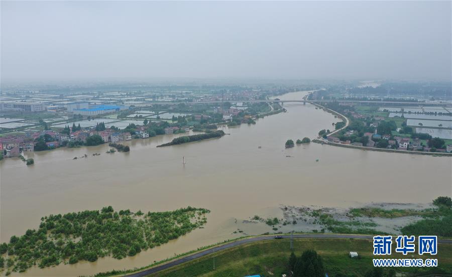 7月9日拍攝的水陽江南京高淳段(無人機(jī)照片)。入梅以來,江蘇省南京市高淳區(qū)多次遭受強(qiáng)降雨,加上上游來水量大,截至7月9日8時(shí),高淳境內(nèi)水陽江水碧橋水位達(dá)到13.01米,超警戒水位2.51米。7月7日水陽江區(qū)域已啟動(dòng)防汛應(yīng)急Ⅰ級響應(yīng)。高淳區(qū)在水陽江區(qū)域堤防沿線設(shè)立241個(gè)防汛值守點(diǎn),實(shí)施24小時(shí)值班值守。新華社記者季春鵬攝