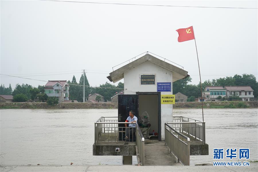 7月9日,在高淳區(qū)陽江鎮(zhèn)永豐圩,巡堤員在值守點(diǎn)值守。新華社記者季春鵬攝