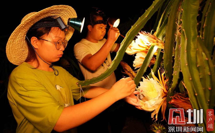 廣西融水:火龍果果農夏夜“點花”忙