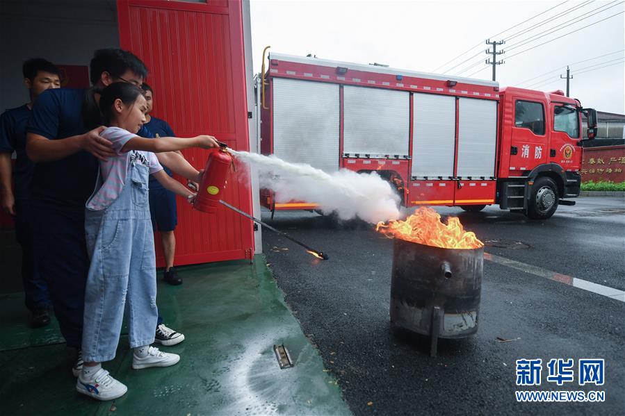 7月16日,東林鎮(zhèn)消防綜合應(yīng)急救援隊隊員在給學(xué)生們講解滅火器的使用方法。當(dāng)日,浙江省湖州市吳興區(qū)東林鎮(zhèn)舉辦暑期“安全防護(hù)小超人”主題活動?;顒佑舍t(yī)護(hù)人員、消防隊員等為學(xué)生及家長講授日常安全避險及溺水急救知識,中小學(xué)們還在現(xiàn)場學(xué)習(xí)了簡易包扎、心肺復(fù)蘇的正確方式,并了解滅火器、滅火毯等消防器材的使用,為學(xué)生平安過暑期打好安全防護(hù)“預(yù)防針”。新華社記者 徐昱 攝