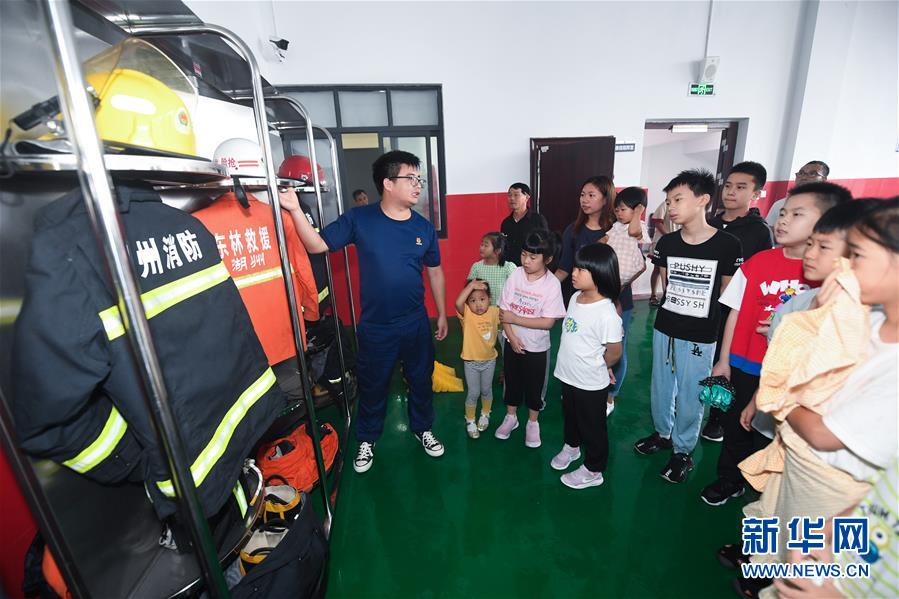7月16日,東林鎮(zhèn)消防綜合應(yīng)急救援隊隊員在給學(xué)生們介紹消防服及消防器材。當(dāng)日,浙江省湖州市吳興區(qū)東林鎮(zhèn)舉辦暑期“安全防護(hù)小超人”主題活動?;顒佑舍t(yī)護(hù)人員、消防隊員等為學(xué)生及家長講授日常安全避險及溺水急救知識,中小學(xué)們還在現(xiàn)場學(xué)習(xí)了簡易包扎、心肺復(fù)蘇的正確方式,并了解滅火器、滅火毯等消防器材的使用,為學(xué)生平安過暑期打好安全防護(hù)“預(yù)防針”。新華社記者 徐昱 攝