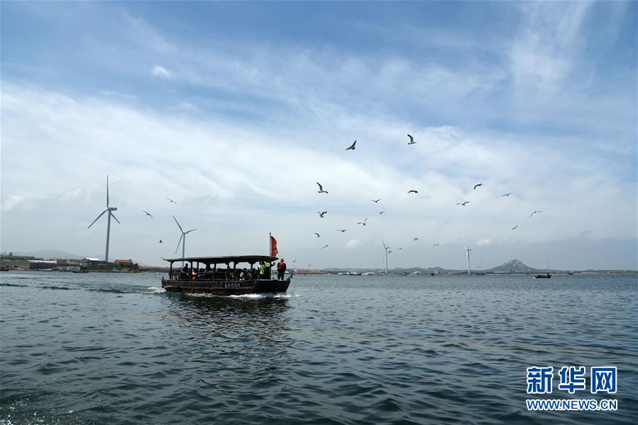 7月17日,游客乘坐觀光船參觀榮成桑溝灣泓泰國(guó)家級(jí)海洋牧場(chǎng)。近年來(lái),山東省榮成市重點(diǎn)發(fā)展特色海洋旅游產(chǎn)業(yè),打造眾多國(guó)家級(jí)海洋牧場(chǎng),保留修復(fù)傳統(tǒng)海草民居,吸引游客前來(lái)觀光體驗(yàn)。如今特色海洋旅游已逐漸成為榮成經(jīng)濟(jì)發(fā)展新的增長(zhǎng)點(diǎn)。新華社記者王凱攝