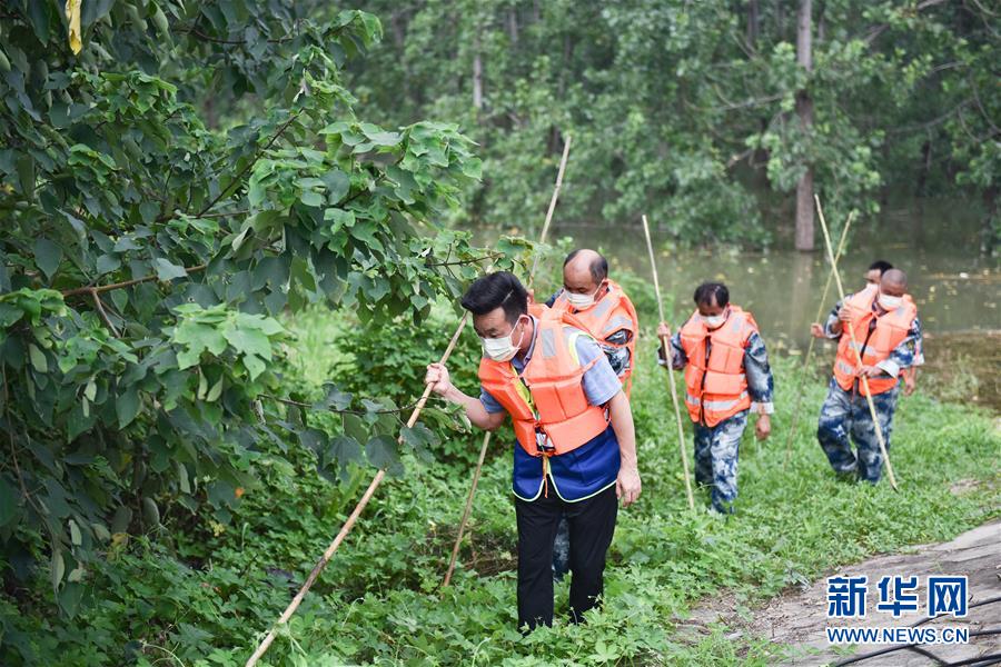 7月14日,中建三局的建設(shè)者在長(zhǎng)江武金堤上巡查。新華社記者 肖藝九 攝