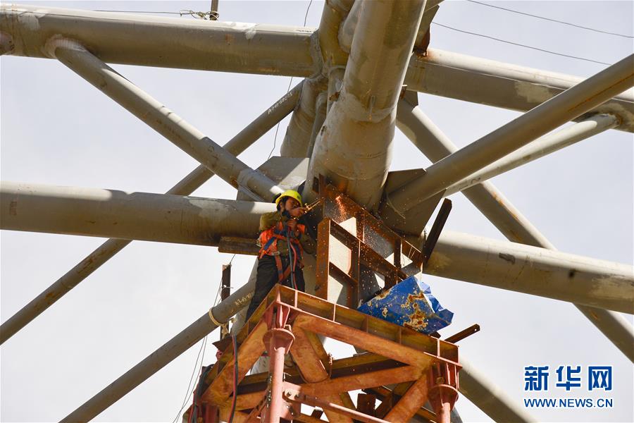 7月27日,工人在拉薩貢嘎國(guó)際機(jī)場(chǎng)T3航站樓的工地上作業(yè)。新華社記者 田金文 攝