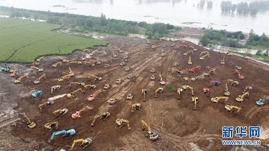 7月26日上午,位于安徽省潁上縣的姜唐湖蓄洪區(qū)戴家湖一處涵閘閘門破損,在大堤背后形成直徑約10米的漩渦,危及附近群眾的生命安全。險情發(fā)生后,當?shù)卣{(diào)配大量機械設(shè)備現(xiàn)場作業(yè),在大堤背水側(cè)修筑一道長600米的臨時圩堤,控制險情。