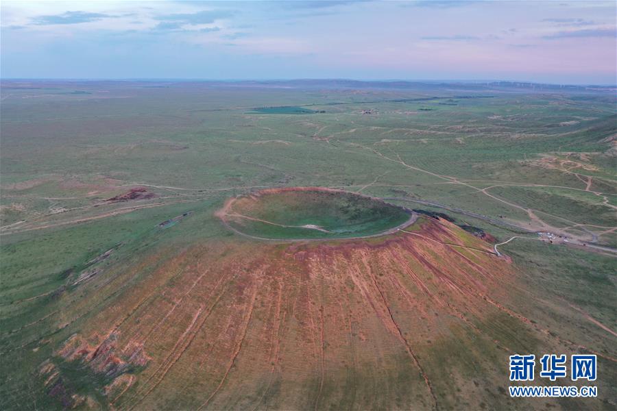 這是在烏蘭哈達火山群拍攝的一座火山(7月29日攝,無人機照片)。新華社記者劉磊攝