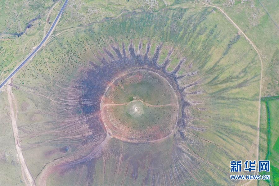 這是在烏蘭哈達火山群拍攝的一處火山口(7月29日攝,無人機照片)。新華社記者劉磊攝