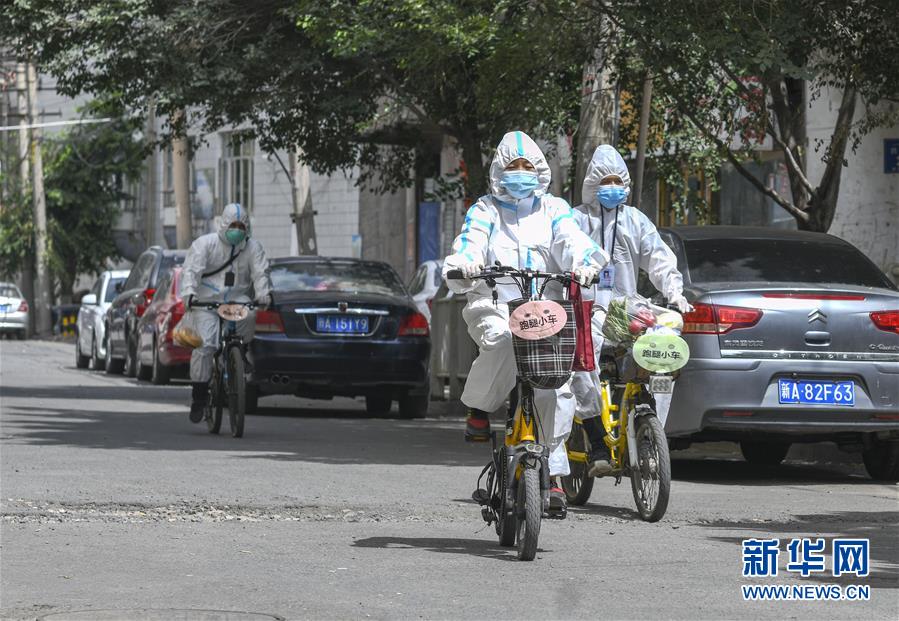 8月3日,在烏魯木齊天山區(qū)西河壩前街社區(qū),社區(qū)工作人員騎著”跑腿小車“為居民送去生活物品。新疆烏魯木齊市天山區(qū)西河壩前街社區(qū)主次干道較多,院落分布分散。新冠肺炎疫情防控期間,社區(qū)整合現(xiàn)有資源,將暫時閑置的自行車、電動車集中起來,貼上“跑腿小車”標識,成立便民服務隊,社區(qū)工作人員通過“跑腿小車”可將居民網絡定制的“菜袋子”“藥盒子”快速送達,給居民帶來方便。新華社記者趙戈攝