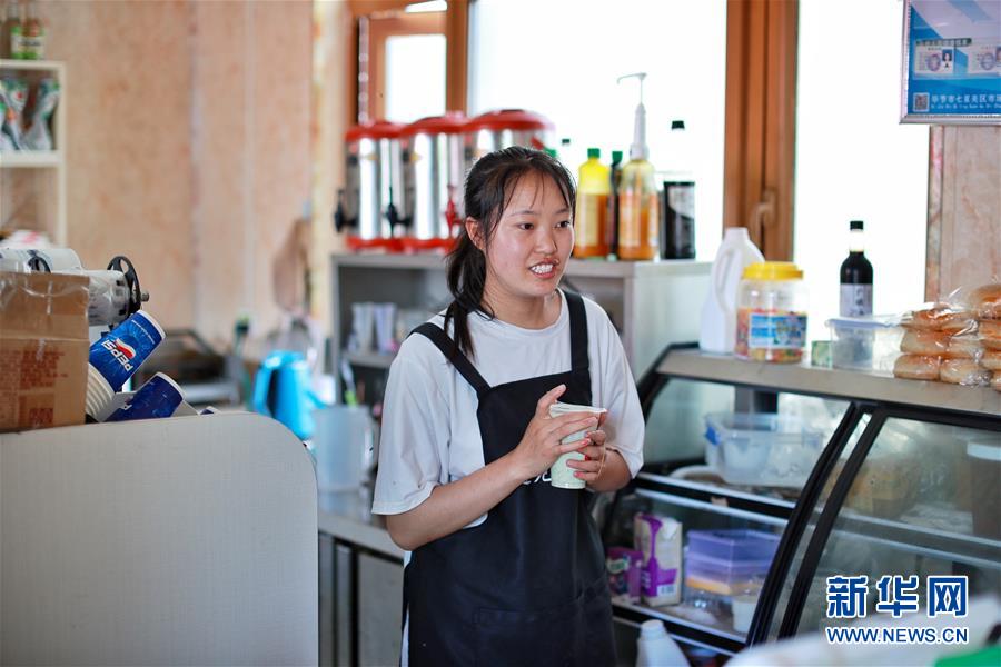 劉林在柏楊林易地扶貧搬遷安置點(diǎn)的一家奶茶店打工,她一個(gè)月可以掙2000多元(8月3日攝)。貴州省畢節(jié)市七星關(guān)區(qū)柏楊林易地扶貧搬遷安置點(diǎn)是畢節(jié)市最大的易地扶貧搬遷安置點(diǎn),總面積約1.1平方公里,從2017年開始至今,共有34個(gè)鄉(xiāng)鎮(zhèn)6372戶29001人安置到位。如今,安置點(diǎn)內(nèi)教育、醫(yī)療、就業(yè)扶貧車間、長幼日間托養(yǎng)照料中心等設(shè)施齊全,搬遷群眾在這里過上了安居樂業(yè)的幸福生活。新華社記者劉續(xù)攝