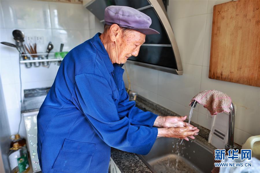 石連英在柏楊林易地扶貧搬遷安置點(diǎn)家中洗手(8月3日攝)。貴州省畢節(jié)市七星關(guān)區(qū)柏楊林易地扶貧搬遷安置點(diǎn)是畢節(jié)市最大的易地扶貧搬遷安置點(diǎn),總面積約1.1平方公里,從2017年開始至今,共有34個(gè)鄉(xiāng)鎮(zhèn)6372戶29001人安置到位。如今,安置點(diǎn)內(nèi)教育、醫(yī)療、就業(yè)扶貧車間、長幼日間托養(yǎng)照料中心等設(shè)施齊全,搬遷群眾在這里過上了安居樂業(yè)的幸福生活。新華社記者劉續(xù)攝