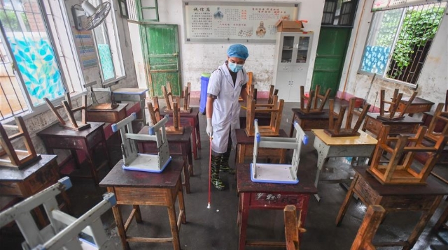 6月8日,永州市江華瑤族自治縣白芒營(yíng)鎮(zhèn)車下完全小學(xué)開(kāi)展清淤、消毒工作,為6月9日恢復(fù)上課做準(zhǔn)備。