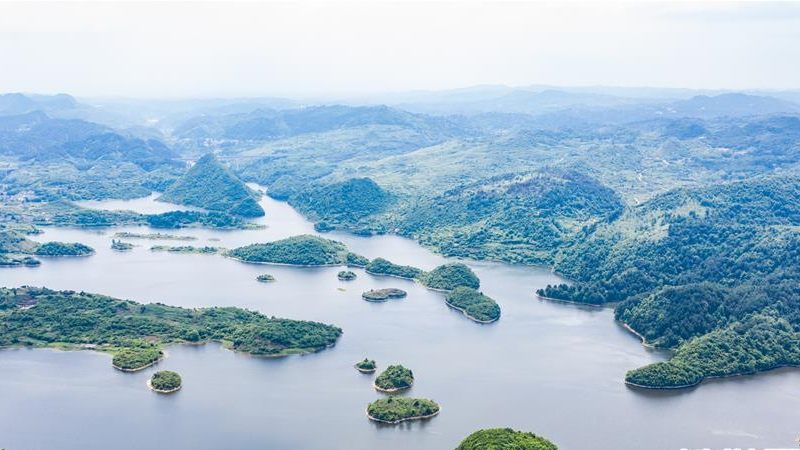 初夏時節(jié),貴州省貴陽市阿哈湖國家濕地公園草木蒼翠,風(fēng)景如畫,吸引人們前來休閑游玩。