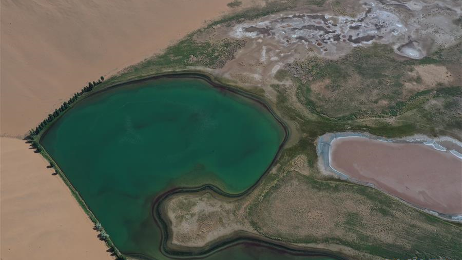 內(nèi)蒙古自治區(qū)巴丹吉林沙漠腹地分布著形狀各異的湖泊。湖泊點(diǎn)綴黃沙之中,成為別致的風(fēng)景。