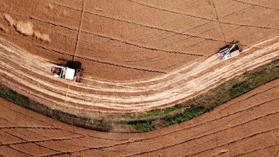 6月2日,在合肥市蜀山區(qū)小廟鎮(zhèn)馬崗村,農(nóng)機(jī)手操作機(jī)械設(shè)備收割小麥。