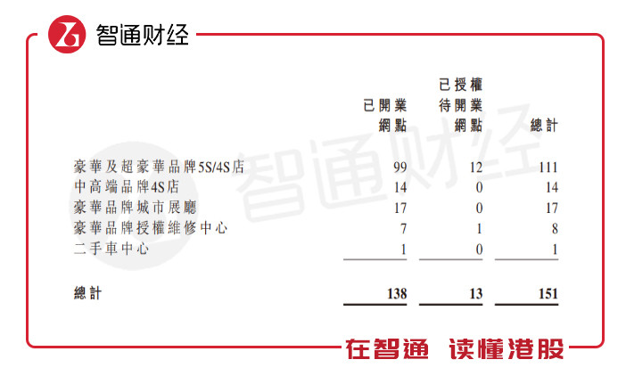 4S店仍是正通投資的重點(diǎn),智通財(cái)經(jīng)APP了解到,上半年該公司建成開(kāi)業(yè)4家豪華汽車(chē)運(yùn)營(yíng)網(wǎng)點(diǎn),其中奔馳一家,寶馬一家,紅旗兩家,截至到6月60日,共有138家4S店,已授權(quán)待開(kāi)業(yè)的有13家,合計(jì)151家。