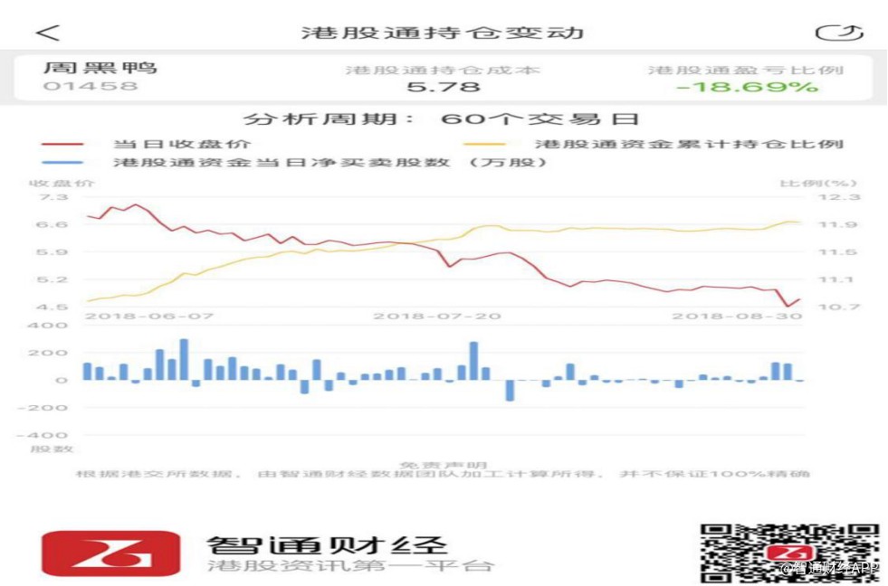 不僅如此,根據(jù)智通財(cái)經(jīng)APP的數(shù)據(jù),近三個(gè)月以來(lái)內(nèi)地資金持續(xù)通過港股通渠道加倉(cāng)周黑鴨,與公司股價(jià)下行趨勢(shì)形成明顯的背離。