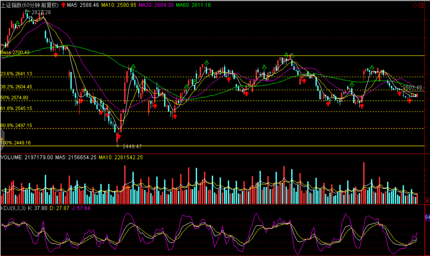 技術(shù)面:短期企穩(wěn)回升,弱勢反彈,60分鐘黃金分割線滬綜指2604點(diǎn)、2641點(diǎn)、創(chuàng)業(yè)板1360點(diǎn)一線存在壓力。