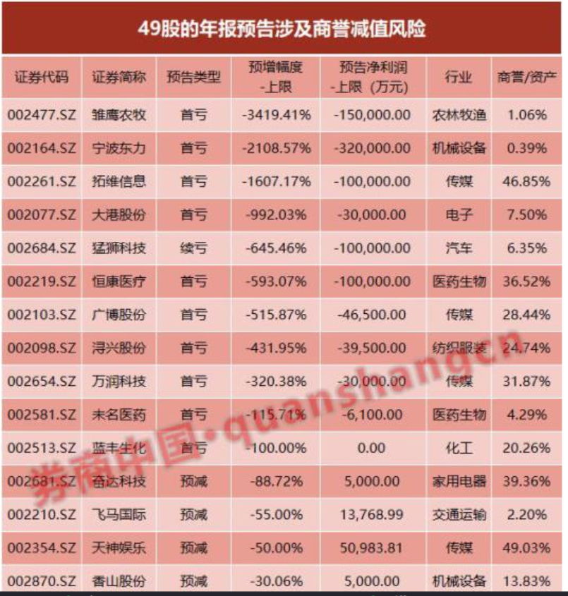 操作建議:本周外圍股市圣誕休市,A股超跌、政策利好顯現(xiàn)下有望企穩(wěn)、回升;50白馬藍(lán)籌持續(xù)調(diào)整顯示中線資金籌碼松動,市場結(jié)構(gòu)性價(jià)值中樞再下臺階,近期注意回避業(yè)績風(fēng)險(xiǎn),尤其是商譽(yù)減值對公司年報(bào)影響。創(chuàng)歷史新高的1.4萬億A股商譽(yù),已切實(shí)地影響上市公司的年度業(yè)績;在已發(fā)布的年報(bào)業(yè)績預(yù)告中國,有49家公司認(rèn)為存在商譽(yù)減值風(fēng)險(xiǎn),將在2018年年底進(jìn)行減值測試,一旦確認(rèn)減值,將導(dǎo)致2018年業(yè)績下滑、轉(zhuǎn)虧或擴(kuò)大虧損,商譽(yù)減值成為一些公司業(yè)績不確定性的一大來源。