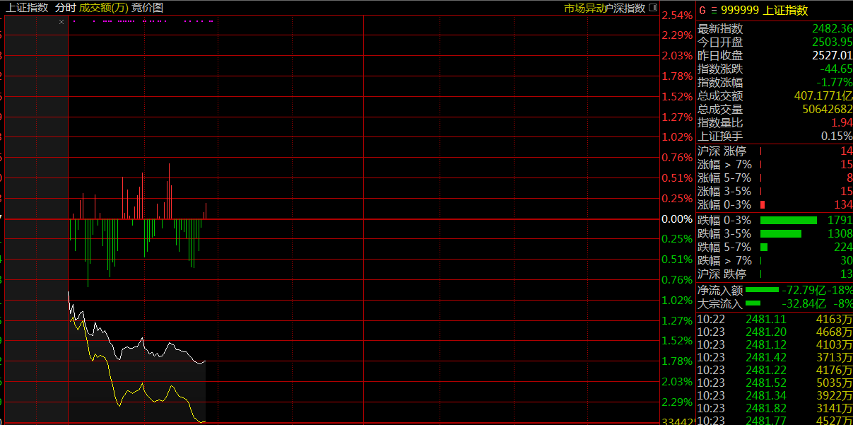 受美股加速下跌影響,12月25日,兩市大幅低開,滬指開盤報2503.95點(diǎn),跌0.91%。深成指開盤報7308.61點(diǎn),跌1.14%。創(chuàng)業(yè)板開盤報1269.14點(diǎn),跌1.18%。