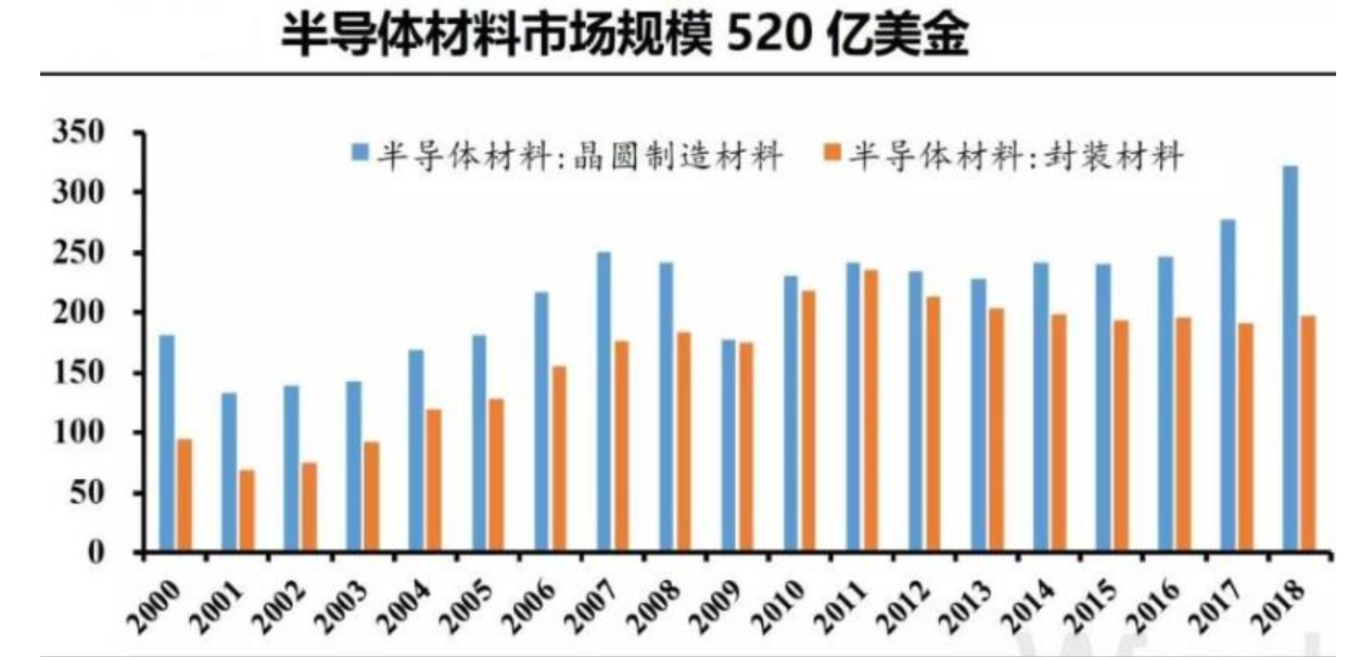 中國(guó)大陸和中國(guó)臺(tái)灣為全球半導(dǎo)體材料主要市場(chǎng),未來需求將持續(xù)增加。至2018年,中國(guó)臺(tái)灣和中國(guó)大陸半導(dǎo)體材料市場(chǎng)分別為790億元和582億元,在全球占比分別為22.0%和16.3%,合計(jì)共38.3%。未來隨著晶圓廠投產(chǎn)量持續(xù)增加,市場(chǎng)規(guī)模將進(jìn)一步擴(kuò)大。