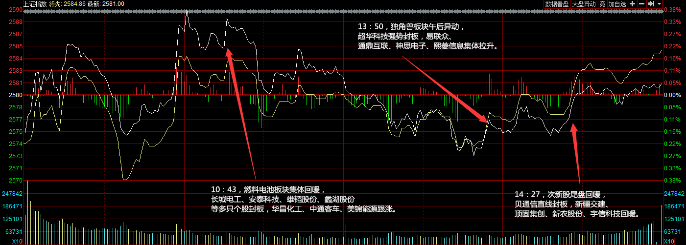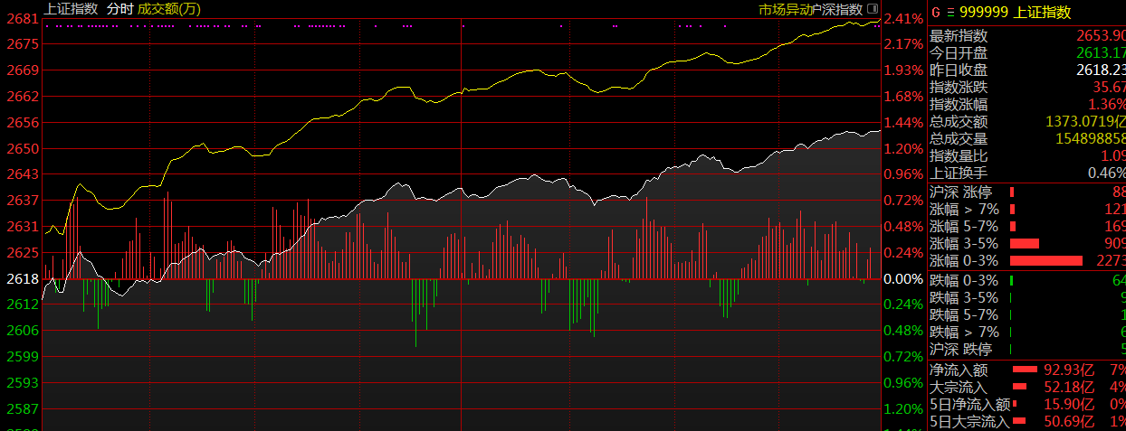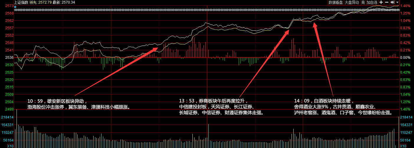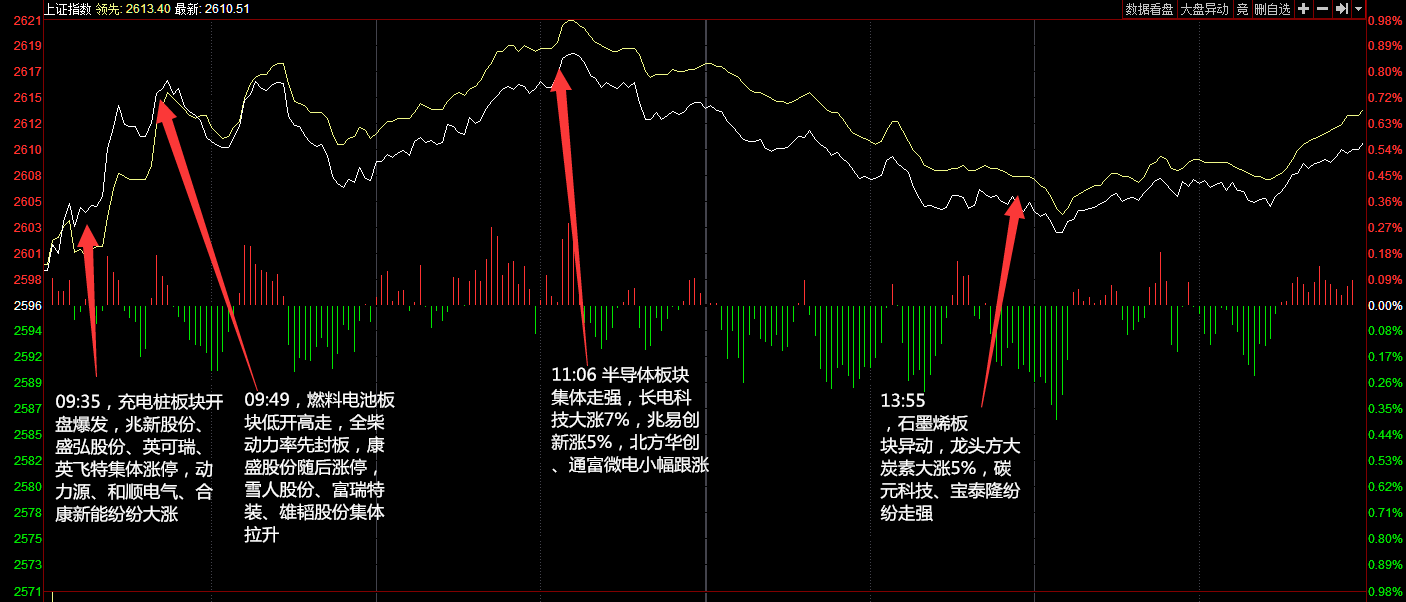 兩市今日平開,隨后氫燃料電池、券商板塊攻勢再起推動指數沖高,早盤兩市震蕩走強。午后指數持續(xù)拉升,大消費板塊崛起,白酒板塊受資金追捧領漲市場,市場人氣比較活躍。